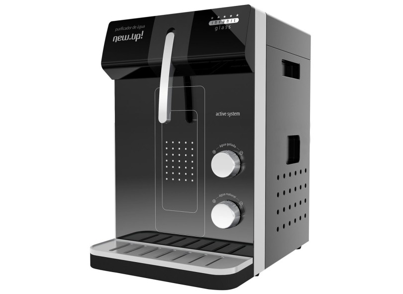 Purificador de Água Infinity Glass da New.Up! Purificador de mesa, com água natural e gelada e sistema de refrigeração por compressor.
